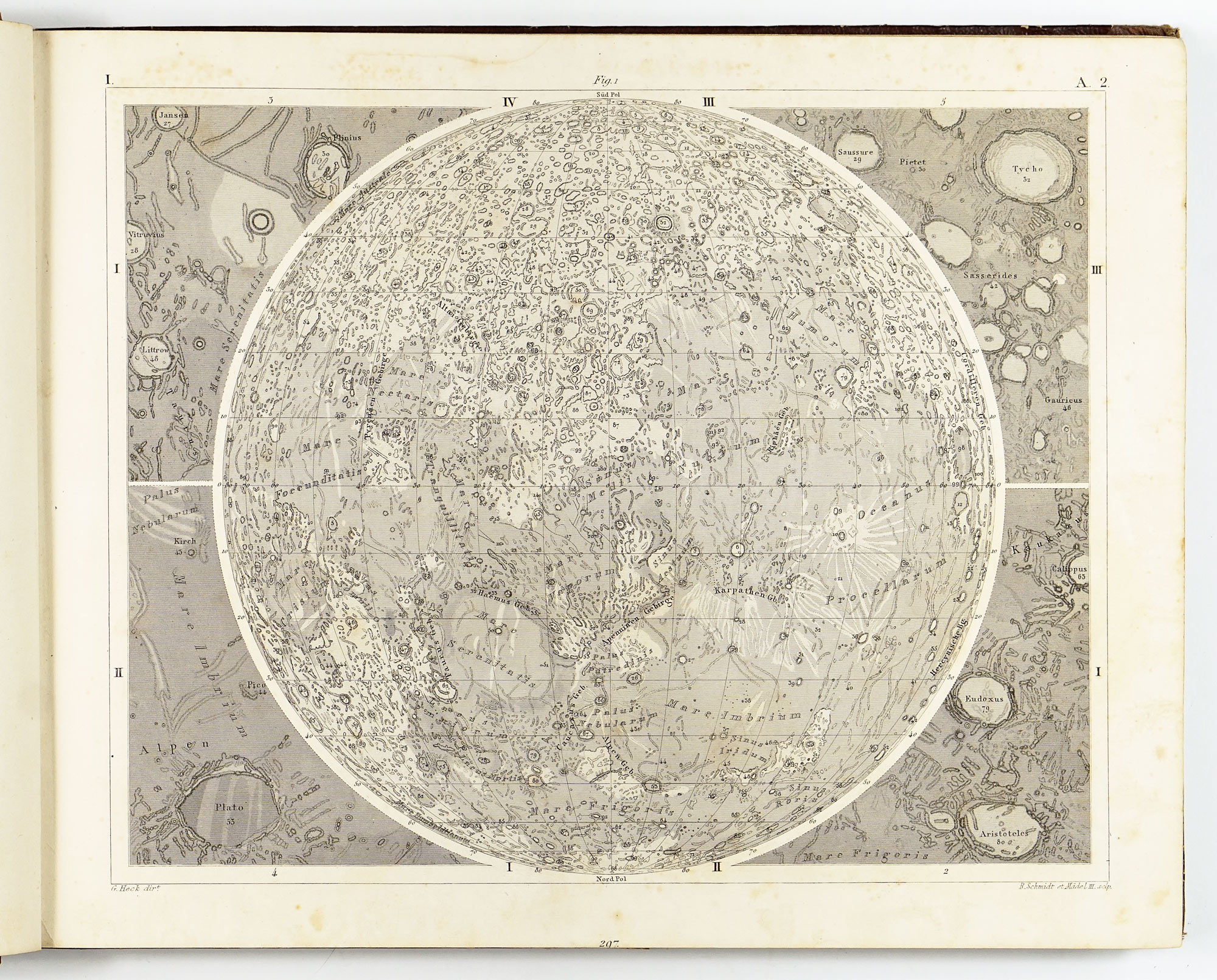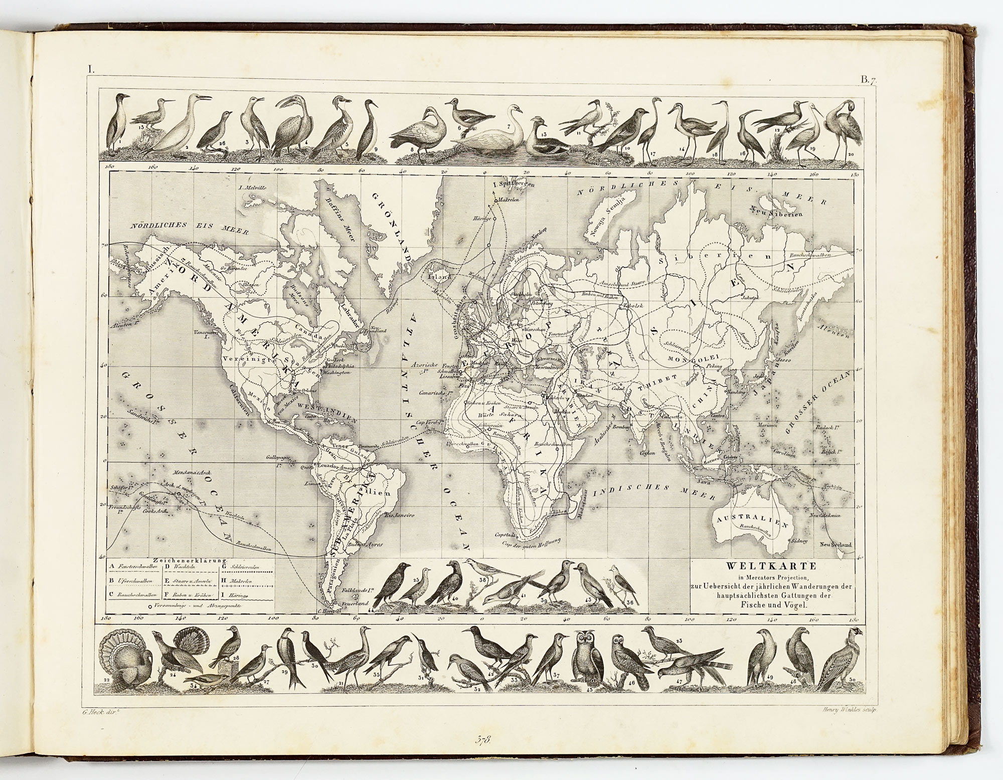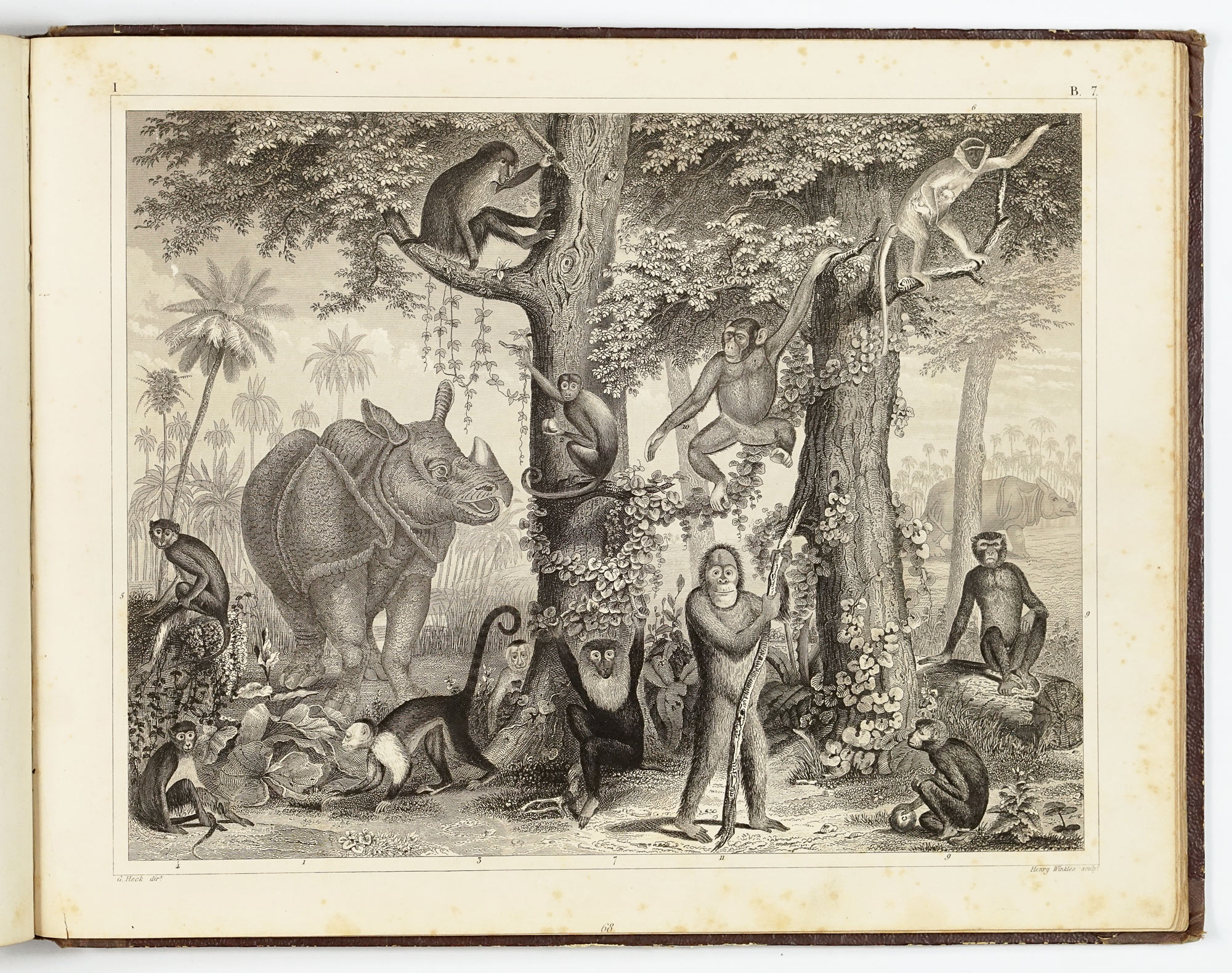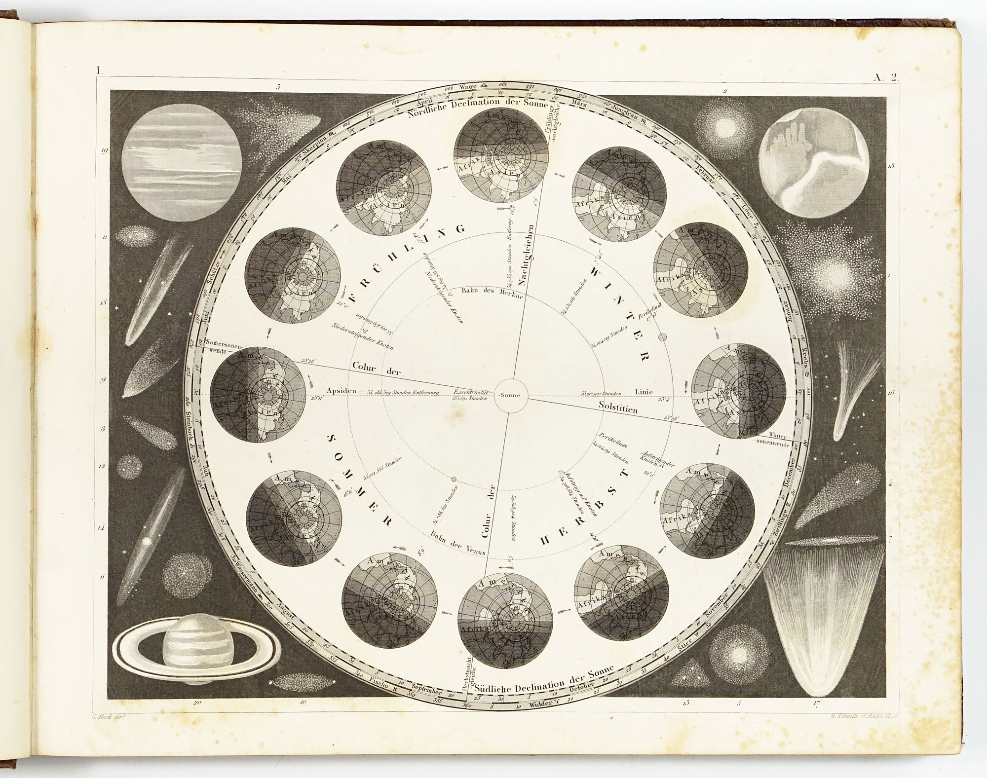 The Bilder-Atlas zum Konversations-Lexikon represents one of the most ambitious attempts of the 19th century to translate contemporary scientific knowledge into a coherent visual language. Issued here in its first edition, the atlas was conceived and edited by Johann Georg Heck and published by the renowned Leipzig house of F. A. Brockhaus. It was designed as an illustrated companion to the Brockhaus Konversations-Lexikon, the most influential German encyclopedia of its time, and established a visual standard that would shape later encyclopedic atlases and pictorial reference works.