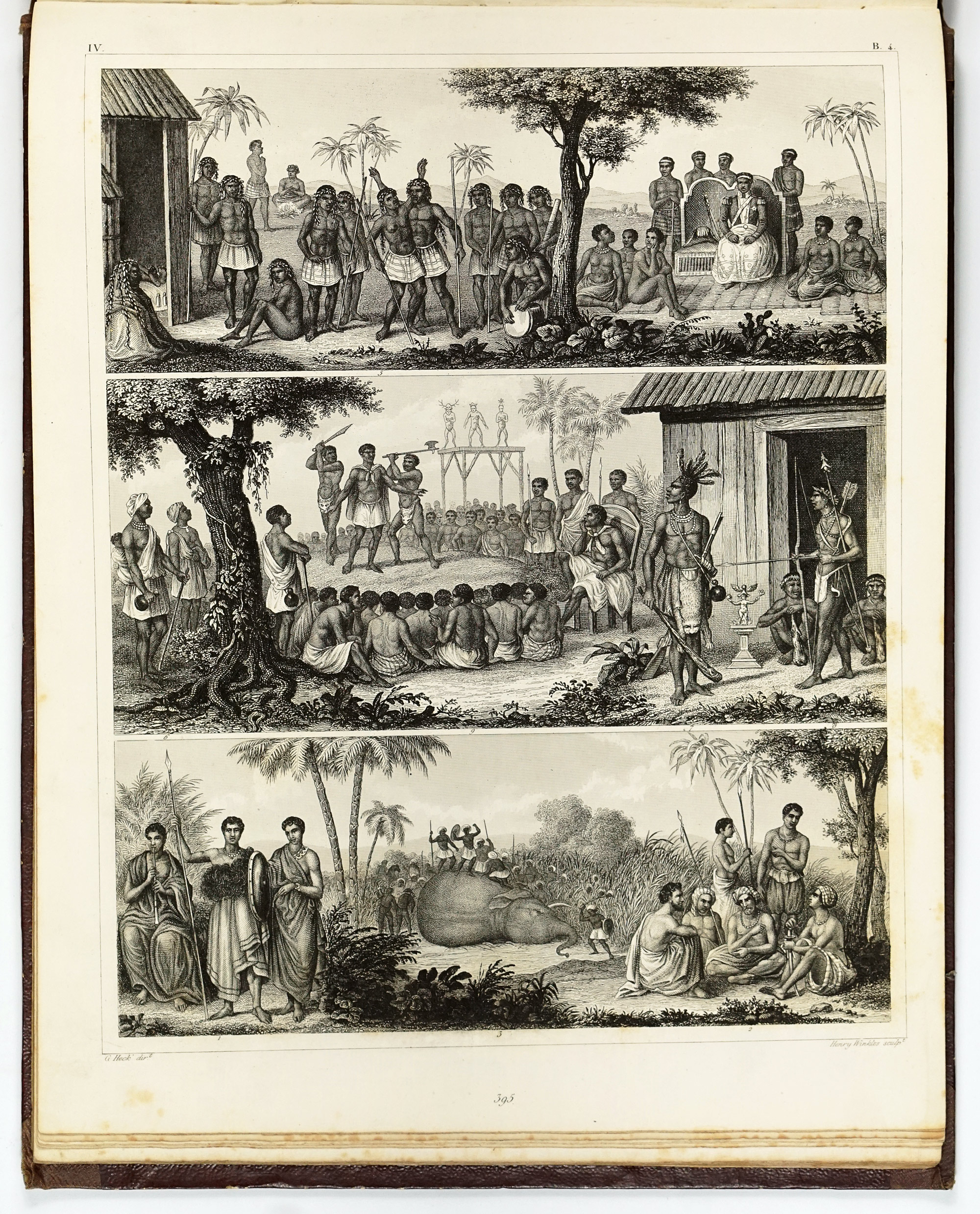 The fourth part is among the most visually striking sections of the entire atlas. Devoted to contemporary ethnology, it seeks to catalogue the peoples of the world as they were understood in the mid-19th century, primarily through costume, physical appearance, and material culture.
