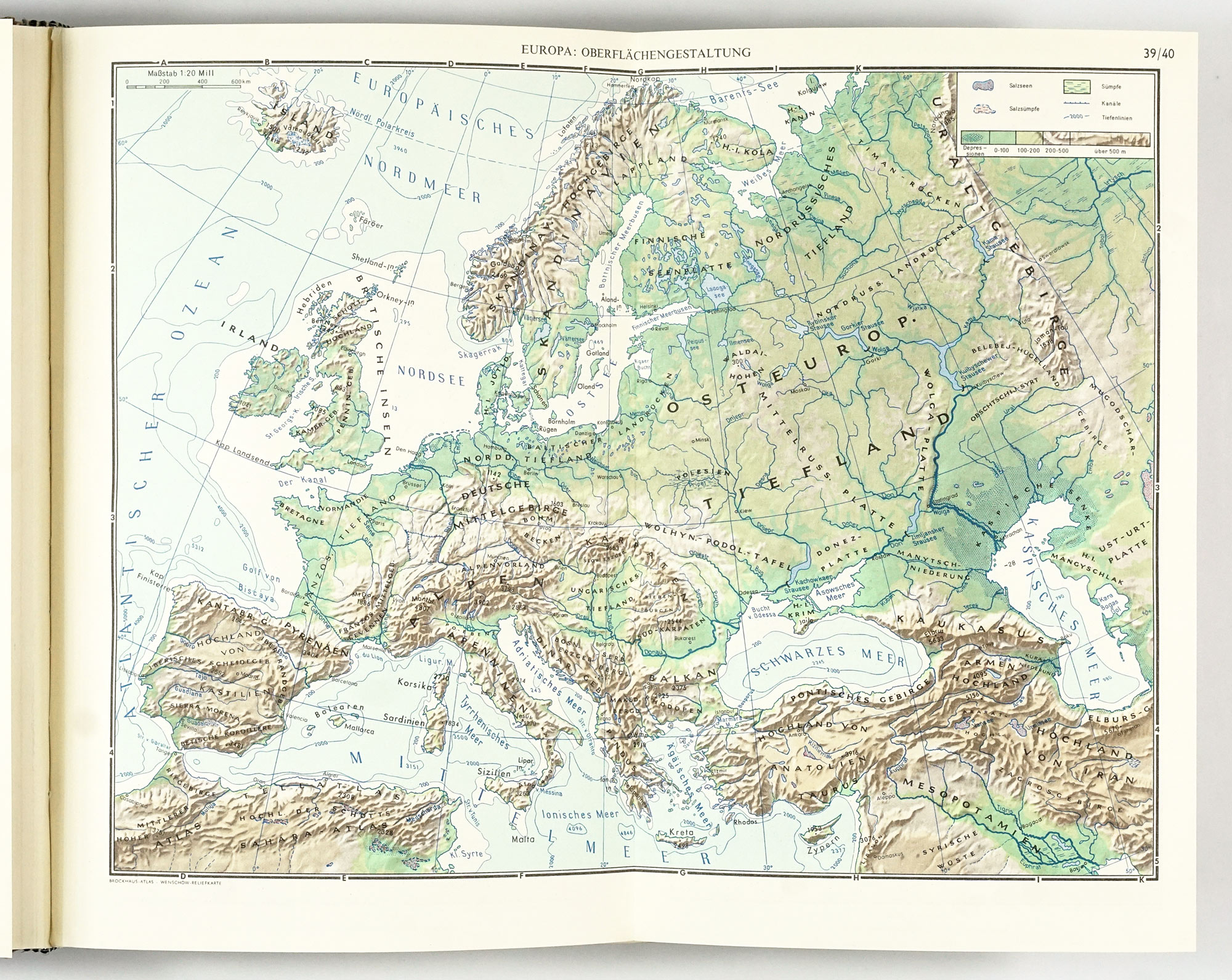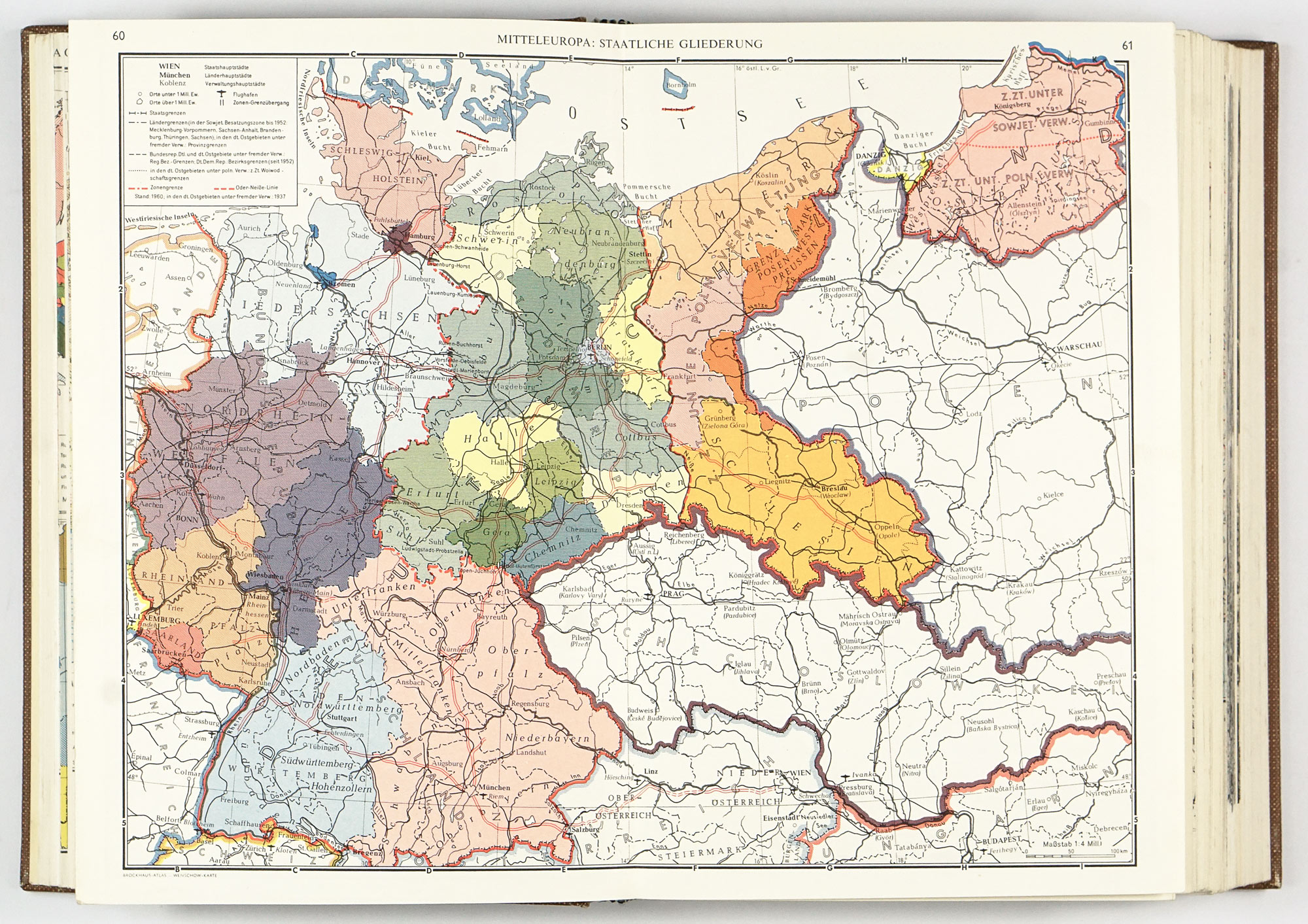 The 1960 Brockhaus Atlas stands as a high-quality reference atlas and an important artifact of 20th-century cartography and a testament to Brockhaus’s enduring publishing standards.