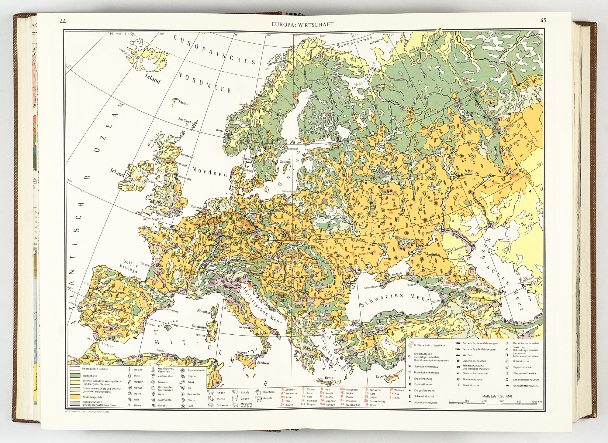 Published fifteen years after the end of the Second World War, this atlas reflects a period of intellectual renewal and international reorientation in West Germany. It presents the world through a rational, scientific lens, emphasizing economic structures, global interconnections, and historical processes rather than ideological rhetoric. As such, it offers insight not only into geography, but also into how the world was understood and explained at the dawn of the 1960s.