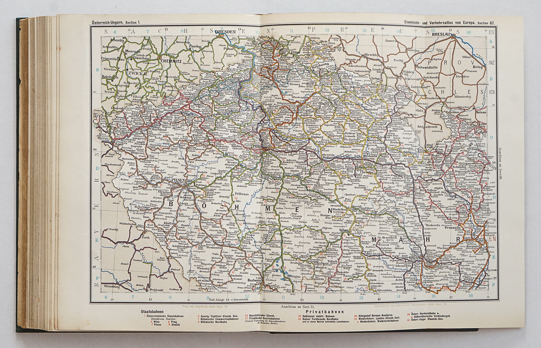 Along with the atlas, a separate volume called "Verkehrshandbuch", containing charts of distances between railway stations, was published in the same year.